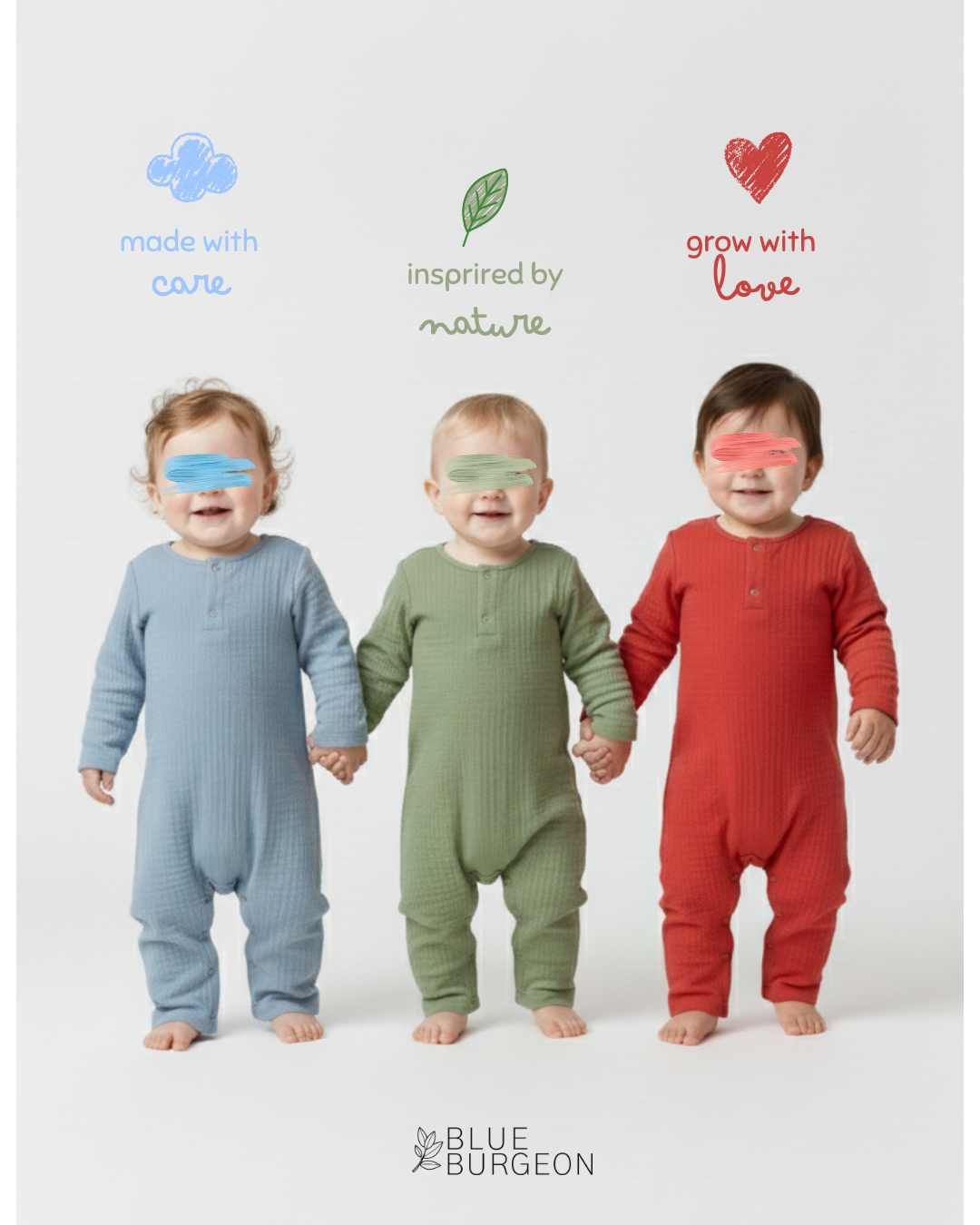%100 pamuk müslin kumaştan üretilen bebek zıbınlarımız, hassas ve narin bebek ciltleri için nefes alabilen, hafif ve konforlu bir kullanım sunmak üzere tasarlandı. Ultra yumuşak müslin dokusu sayesinde doğal hava akışı sağlar, vücut ısısının dengelenmesine yardımcı olur ve gün boyu rahatlık sunar.